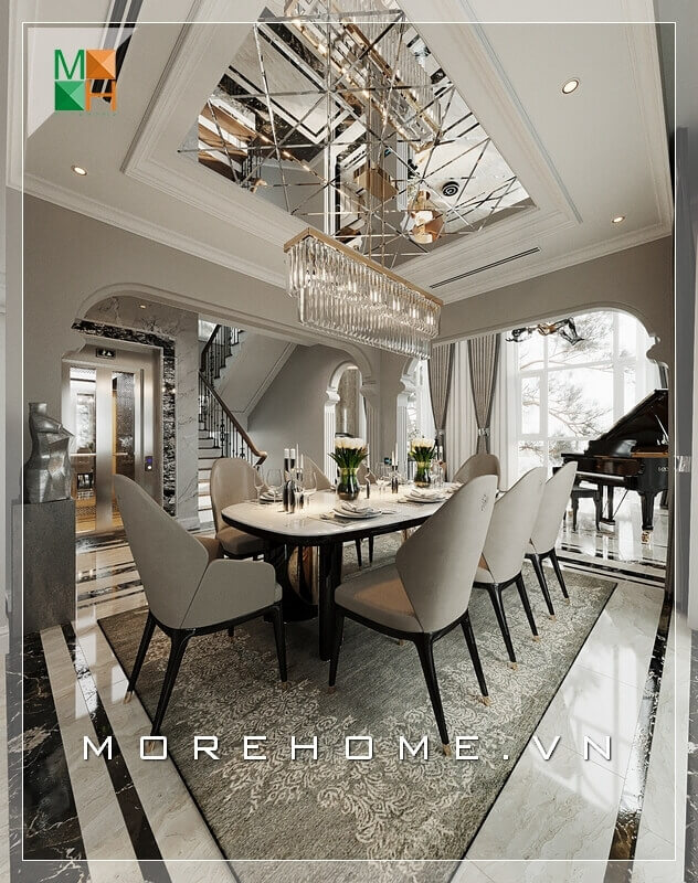 Không gian sang trọng tạo kết hợp đồ nội thất hiện đại tạo vẻ đẹp độc đáo cho phòng khách biệt thự, nhà phố.