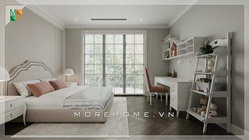 Mang cảm giác dễ chịu và thoáng mát đến với không gian sống của gia đình bằng mẫu thiết kế phòng ngủ biệt thự sang trọng của Morehome.