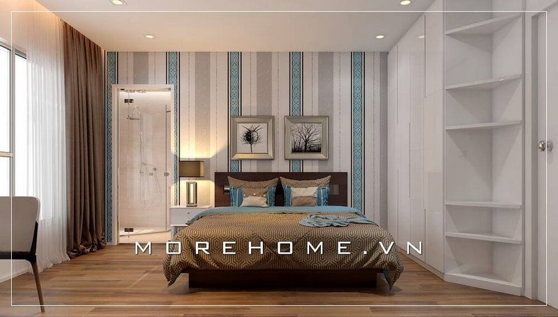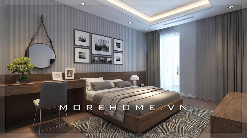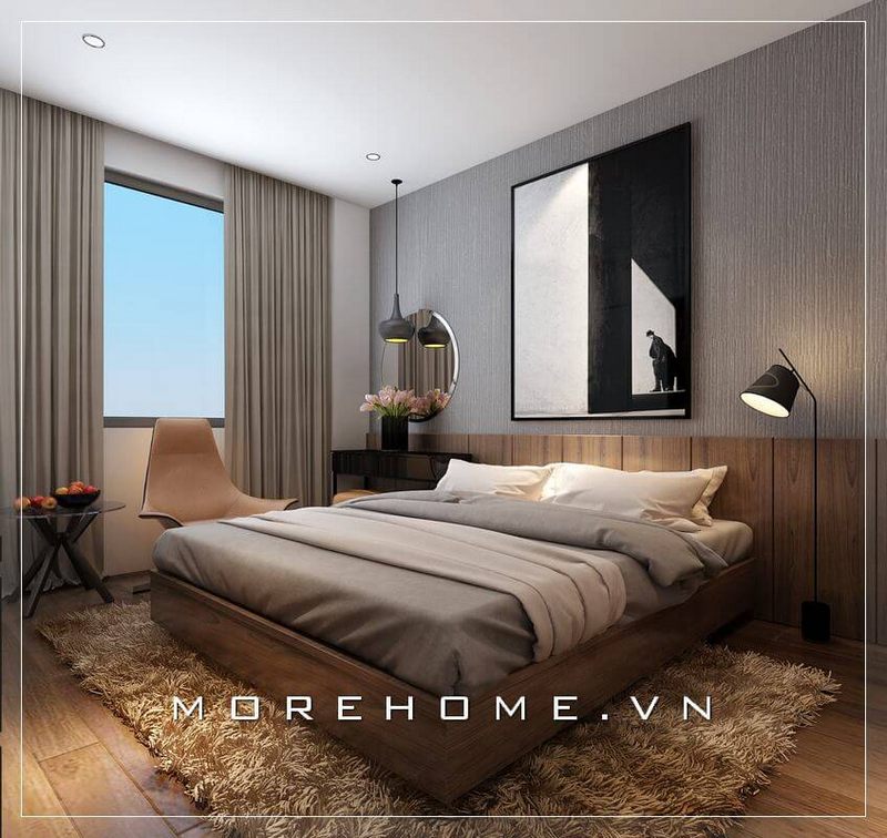 Thiết kế giường ngủ chung cư hiện đại, sang trọng với tone màu nâu trầm chủ đạo