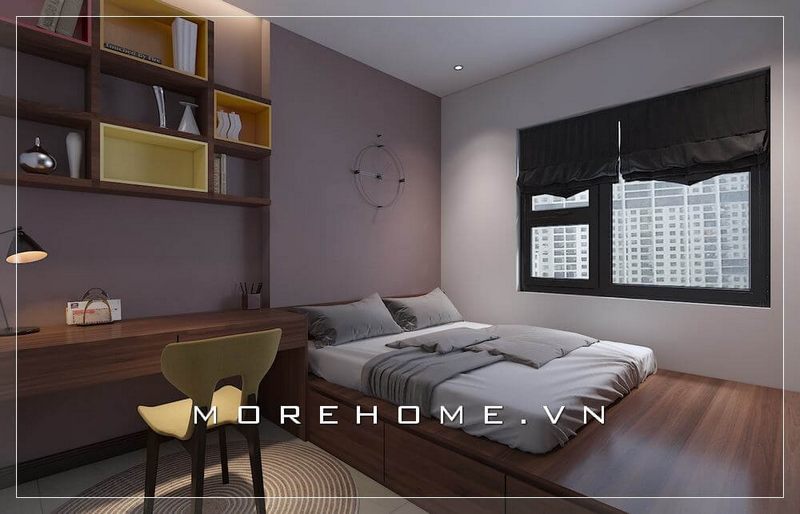 Giường ngủ màu nâu hiện đại trở thành điểm nhấn hoàn hảo cho không gian phòng ngủ chung cư nhỏ
