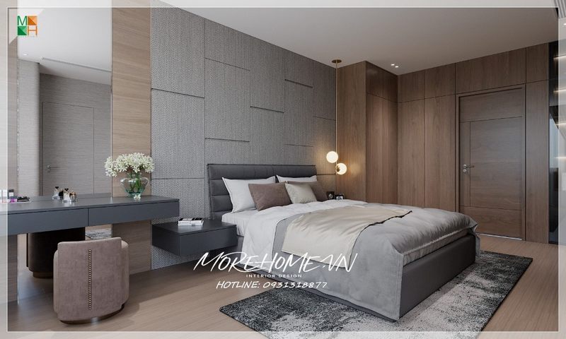 Lựa chọn cửa gỗ công nghiệp gam màu nâu trầm sang trọng tạo điểm nhấn ấn tượng cho không gian phòng ngủ