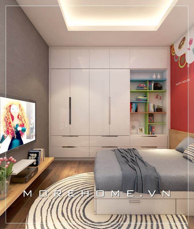 Thiết kế tủ quần áo trẻ em hiện đại âm tường, giúp tiết kiệm tối đa diện tích, mang đến cho căn phòng ngủ nhỏ thêm thoáng đãng hơn cả