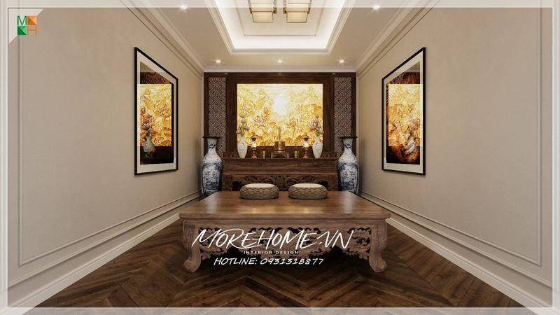 Mẫu thiết kế phòng thờ với nội thất gỗ óc chó cao cấp cho chung cư, nhà phố, biệt thự