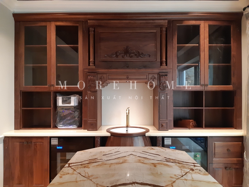 Việc thi công nội thất bếp bằng gỗ tự nhiên đem lại vẻ đẹp sang trọng, cao cấp và tiện nghi cho không gian bếp trong quá trình sử dụng.