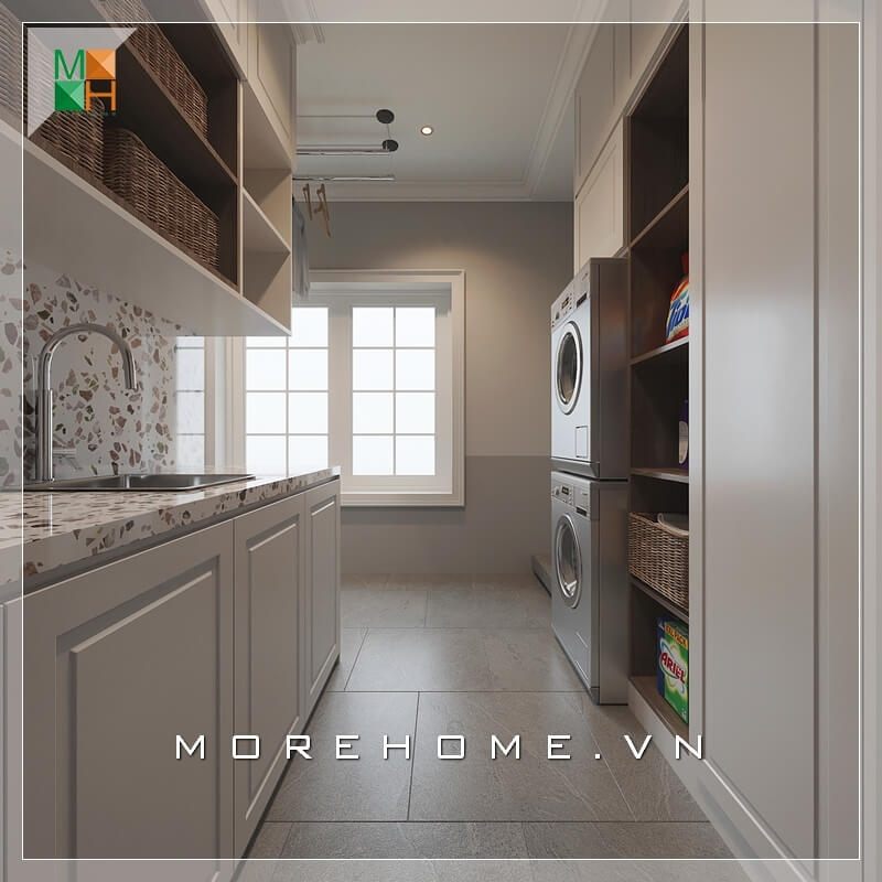 Phòng bếp hiện đại nhỏ gọn cung cấp sự tiện lợi trong việc sử dụng, với đá nhân tạo hoa văn cuốn hút gây cảm hứng cho người nội trợ.