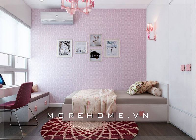 Phòng ngủ hiện đại và ấn tượng cho bé gái được thiết kế bằng gam màu trắng tinh tế và thanh thoát.